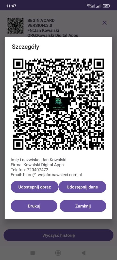🔸 Dane kontaktowe (wizytówki QR)